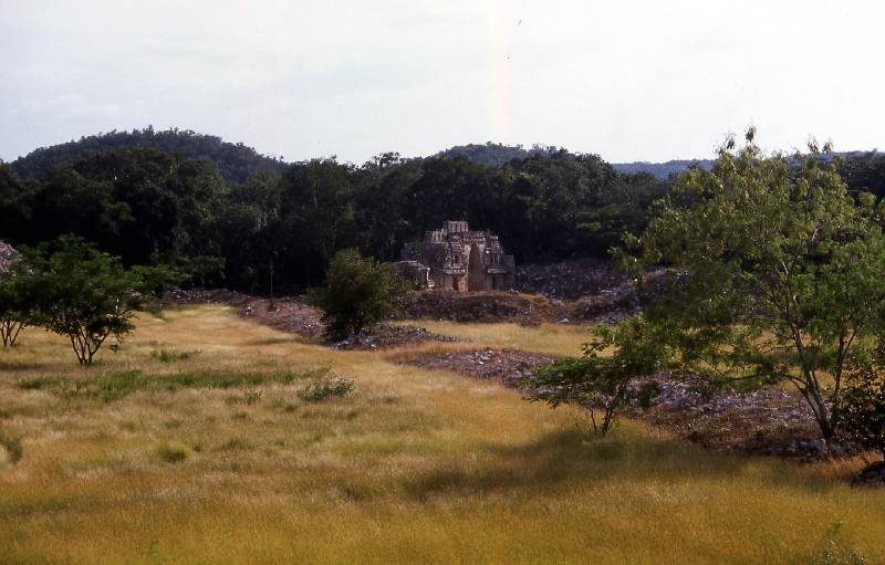 Der Turm und der Palast sind über Strassen (sogenannte Sacbe)verbunden. Diese "Sacbe" verbanden auch die Orte Labna, Kabah, Sayil und Uxmal. |