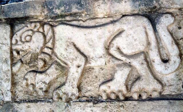 Neben der Tempelplattform befindet sich der Palast mit der Schlangenmauer mit Schmuckreliefs von Schlangen, Adlern und Jaguare |