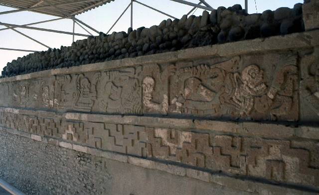 Diese Mauer ist den toltekischen Kriegerkasten gewidmet. Diese Kasten wurden später auch von den Azteken übernommen. |