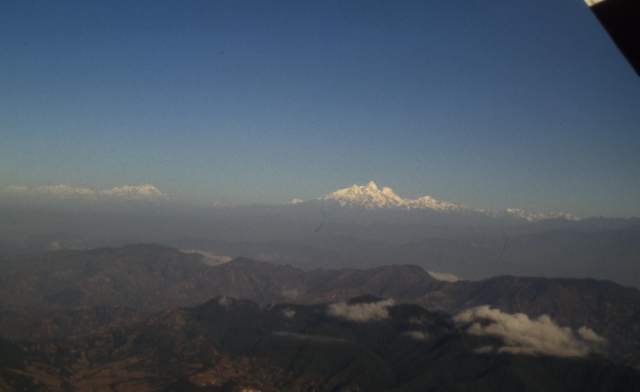 Die großen Berge sind noch weit entfernt, die Sicht noch nicht so gut. Im Hintergrund: der Gosainthan 8013 Meter hoch |