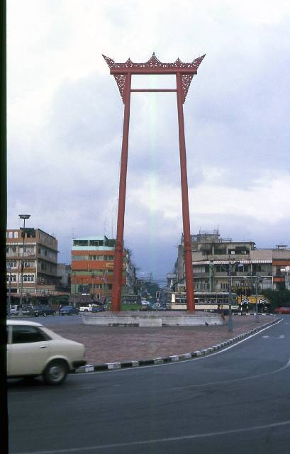 Die große Schaukel (Giant Swing). Früher wurde hier ein Fest zu Ehren des Hindu-Gottes Shiva abgehalten. Aufgrund vieler Toten wurde das Fest 1935 verboten. |