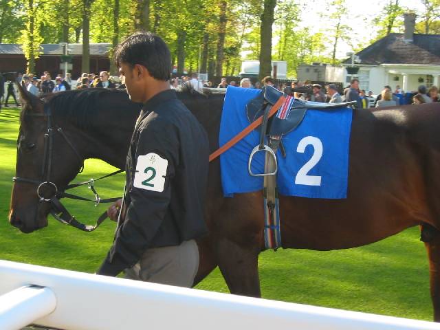 Vor dem Rennen werden die Pferde im "Parade Ring" herumgeführt. Dort kann man sich seinen Favoriten aussuchen. |